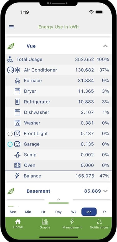 Providing detailed information about energy consumption and ways to save. Knowing if your electric service can handle additional circuits or appliances is now easy with our Power monitoring.